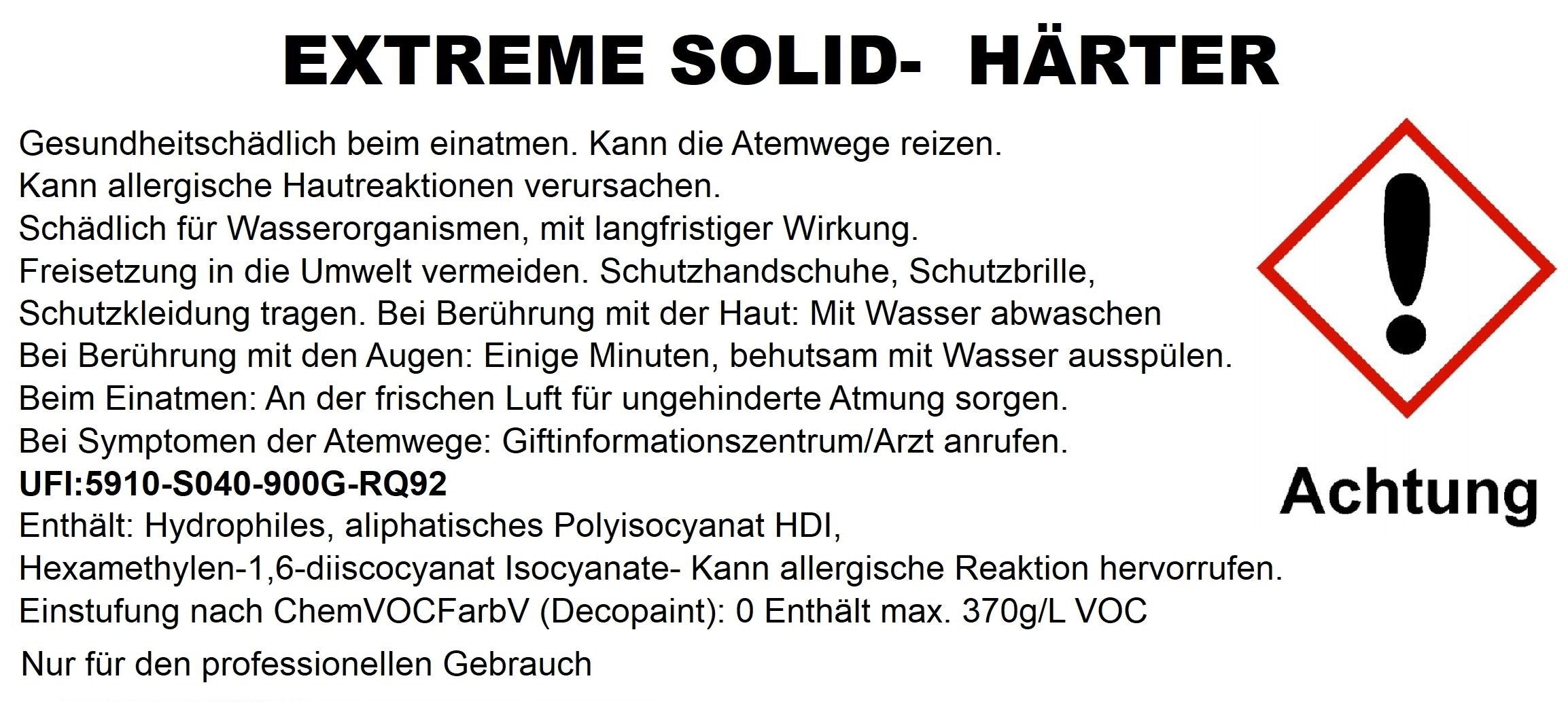 Durch den "SOLID+" Härterzusatz (Mischverhältnis 1:10) wird die Oberfläche noch härter, strapazierfähiger und trocknet 3 x so schnell als ein herkömmliches 1K Lacksystem.